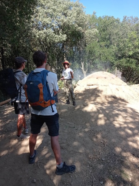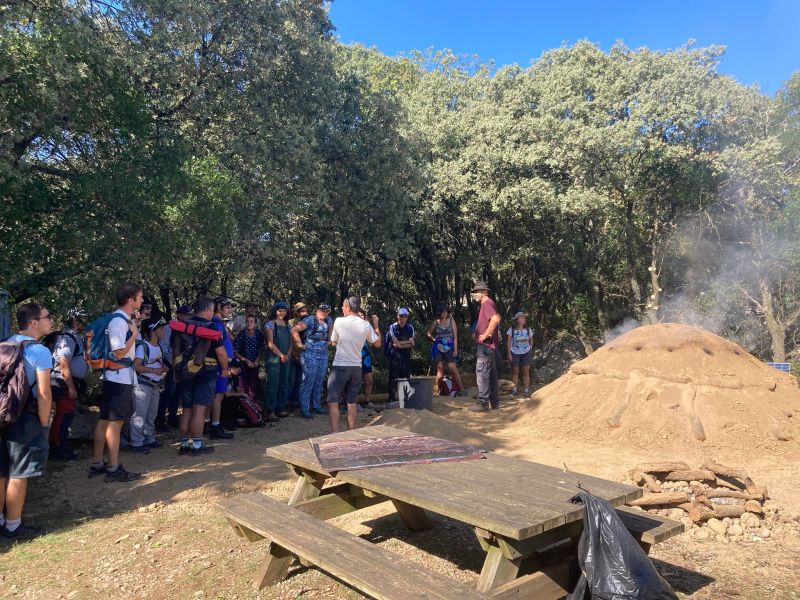 Cette troisième charbonnière réalisée à l’entrée du site néolithique de Cambous au village de Viols-en-Laval s’inscrit dans la volonté des deux archéologues Luc Jallot et Simon Mercier de pérenniser ce genre de manifestation. Trouver des ressources humaines et financières ne sont pas faciles et donc un grand merci à eux deux dans le cadre de la SLP (Société Languedocienne de Préhistoire) d’avoir cette énergie. Le contact de la science, le savoir, avec la pratique, le savoir-faire, est tellement enrichissant pour les uns et les autres. Nous avons dans ce partage mis le doigt sur un manque : comment les artisans du chalcolithique, l’âge du cuivre, produisaient ils leur charbon de bois ? Nous avons eu aussi la présence de l’avenir avec la pétillance de Maya, étudiante en archéologie et peut être future charbonnière !