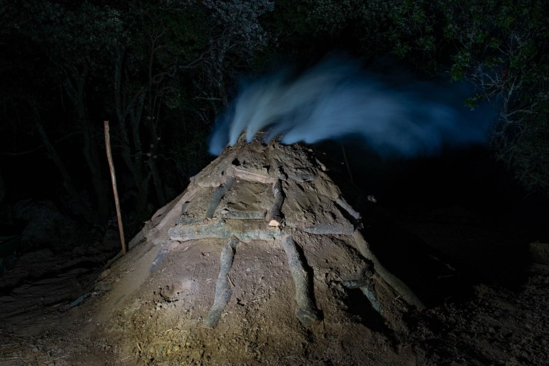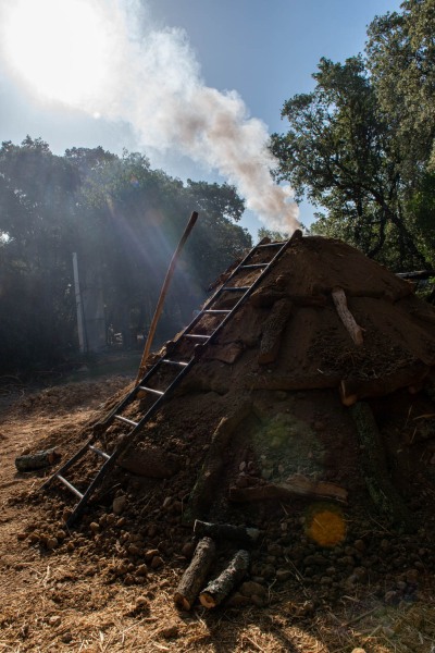 Mois de mai, mois des charbonnières. Pendant que je conduirai la mienne à coté du Pic-St-Loup, Jean et son équipe auront la leur dans le petit coin de garrigue ardéchoise comme chaque année. Faites fête au charbon de bois et aux charbonnièr-es !