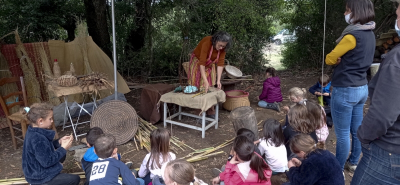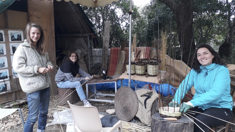 Le dimanche se sont déroulés deux stages dans le site. Un sur la taille des silex et l’autre sur la vannerie sauvage animé par Martine.