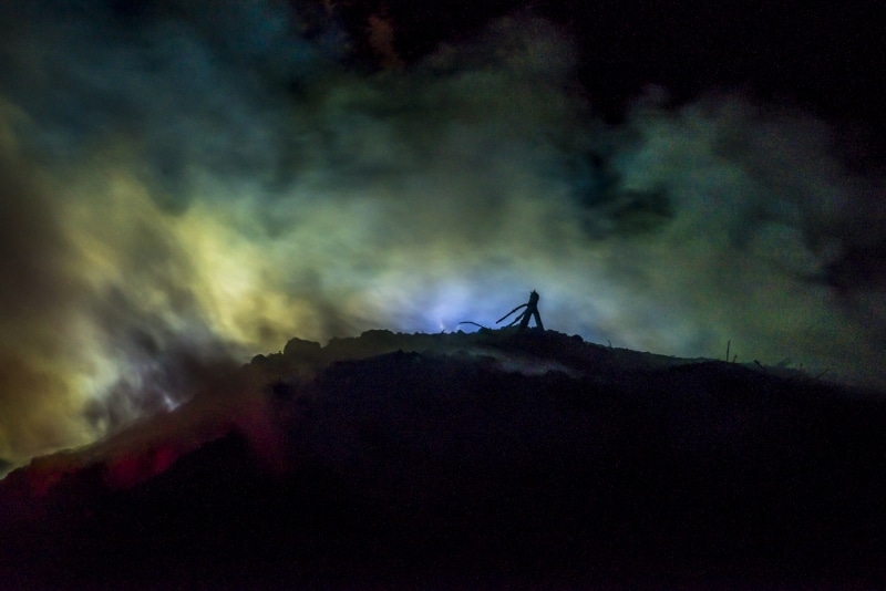 Finalement c’est curieux de voir que pour faire un charbon très noir on produit d’énormes quantités de fumées blanches. Fumées qui jaunissent puis donnent un superbe bleu digne des œuvres de Van Gogh.