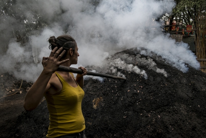 Puis le geste valorisant de la mise en sac et de tous ces sacs qui s’alignent, preuve de la bonne cuisson de la charbonnière.
