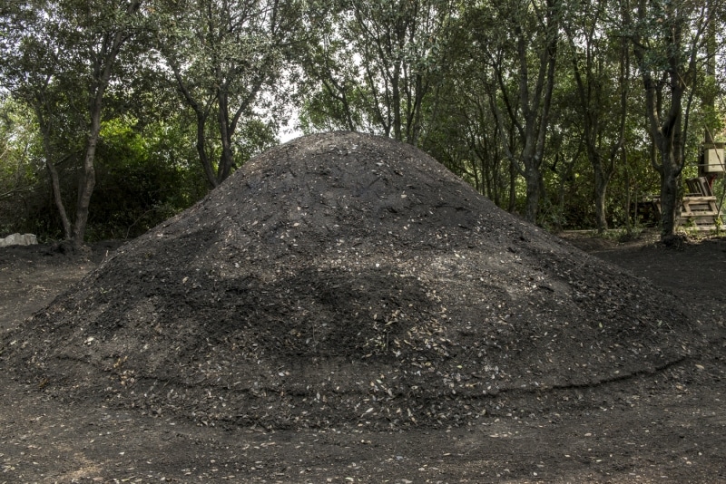 Encore plus de terre autour, elle servira pour le recouvrement de la meule, et le bois bien rangé en rond, le charbonnier peut aller se reposer tranquille.