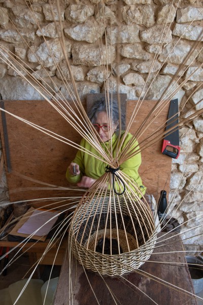 Petit séjour en Anjou, pas loin de la Loire avec ses châteaux, dans la petite ville de Villaines-Les-Rochers, capitale de la vannerie. Dans la rue principale les maisons accolées à une sorte de colline plate ont toutes des extensions troglodytiques. Creusées dans le tuffeau, ces petites pièces servaient d’habitations et de réserves. La région est riche de cette architecture souterraine. Nous sommes donc ici pour la semaine, Martine à un stage de tressage de l’osier chez Romand’art avec Catherine et Christophe, de véritables artistes de la vannerie https://www.vannerie-romand-art.com/vanniers-villaines-les-rochers/https://www.vannerie-romand-art.com/vanniers-villaines-les-rochers/