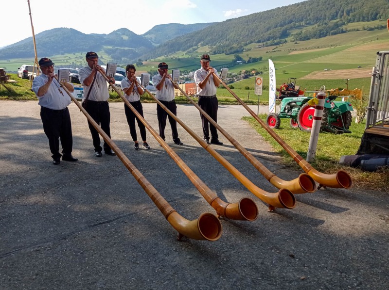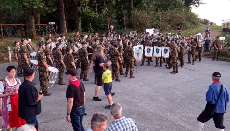 Fanfare de l’armée Suisse, groupes musicaux divers, cors des Alpes et une surprise de taille, 20 bonhommes qui agitent de grosses cloches. Parait que c’est très traditionnel, et très bruyant, cela s’appelle les sonneurs de cloches…meuh !