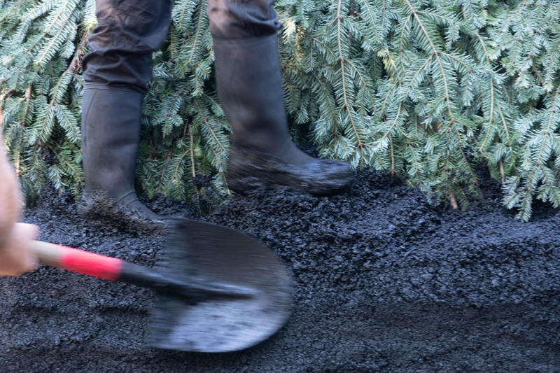 Encore plus de terre autour, elle servira pour le recouvrement de la meule, et le bois bien rangé en rond, le charbonnier peut aller se reposer tranquille.