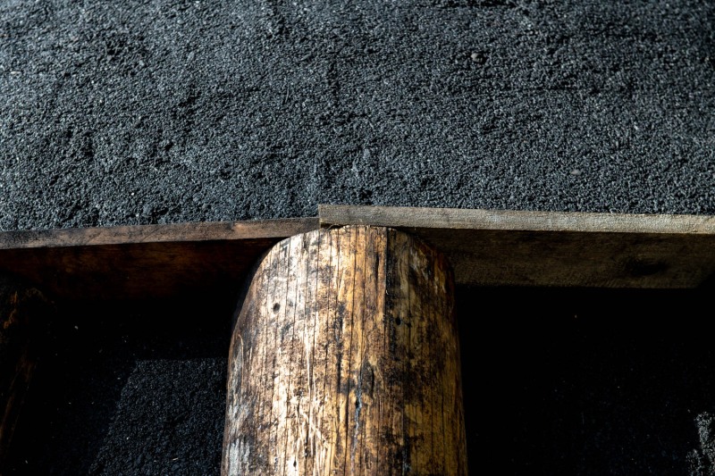 Toutes les deux heures, nos dames, versent un sac de copeau dans la cheminée. Cela reste un petit mystère que je n’ai pas encore très bien compris. Certainement que c’est le processus d’allumage qui est progressif et dure toute la nuit. Au petit matin la meule fume tranquillement, les premiers trous en couronnes sont formés, la carbonisation est enclenché.