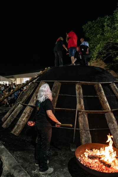 La meule était un peu plus pointue que les autres années. Mais en déposant la terre sur le bois grâce à des paniers en osiers, celle-ci a bien tenu.