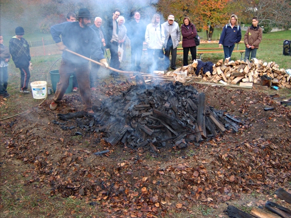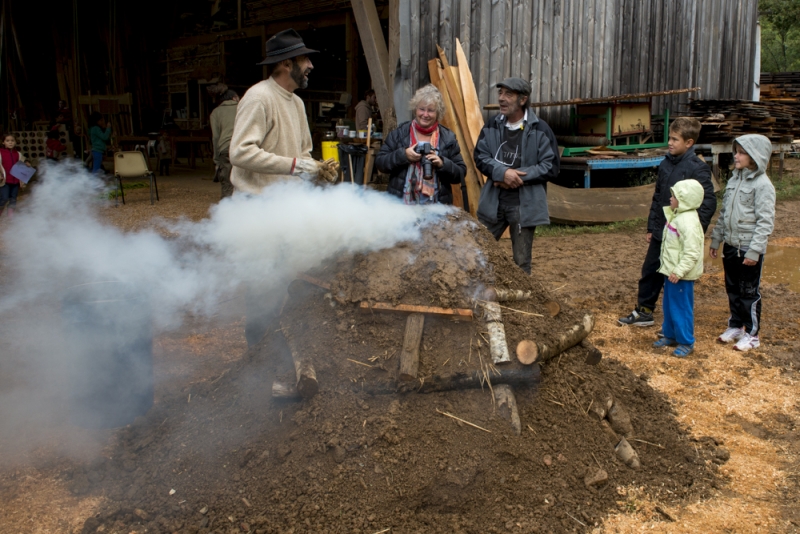 Cette année, un groupe très sympathique de jeunes et venu s’initier à la carbonisation. Faut dire que eux même sont en liaison directe avec l’utilisation du charbon de bois car ils et elle sont forgerons(es).